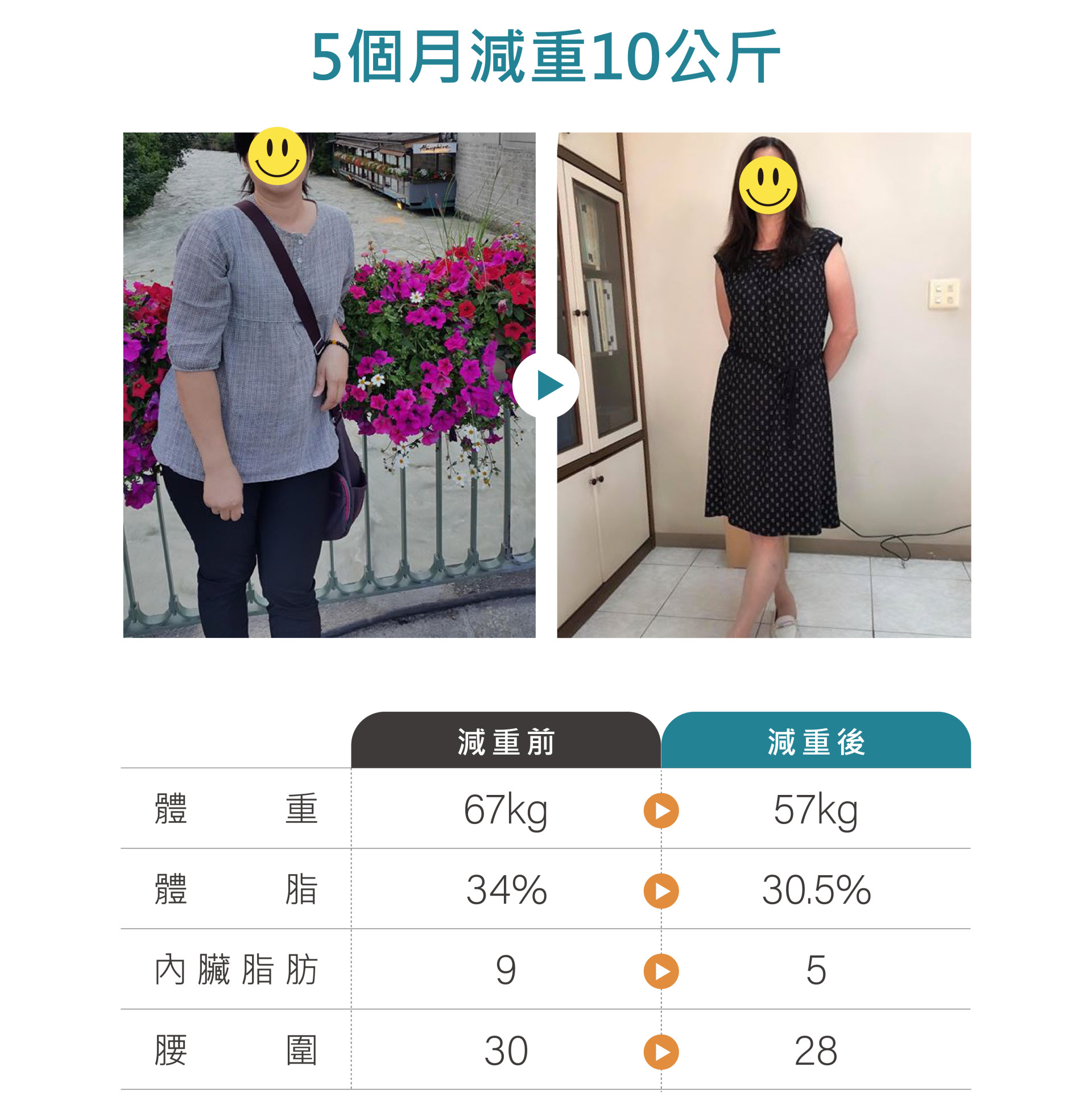 曾經嘗試各種方法減重,但始終「瘦了又胖」,體重反反覆覆的,直到健檢數據出來,發現身體亮起了紅燈,才驚覺應該要注意體重問題了,不只是為了外貌好看,更重的的是為了健康著想,才能陪伴家人以及我最愛的兩個孩子成長。